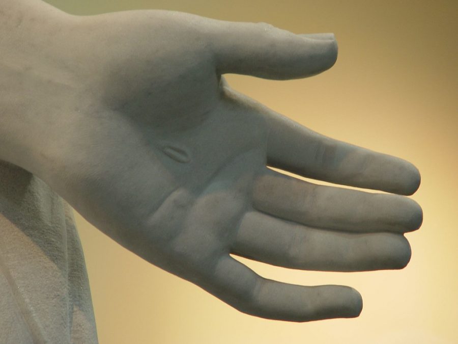 All this happened only a few weeks ago. Leaves that now litter byways from London to County Cork, where my friend is from, were then just beginning to curl inwards on their yellowing bellies. To go back further still: in August, I was camping at Greenbelt, an eco-spiritual festival, with my friend and six others. From a bar stool in the Hope and Anchor, a pub tent festooned with fairy lights and portraits of John Wesley on a unicorn, I gave the talk I was originally supposed to write up for this article. The talk was about self-harm scars and survival, and my central text was John 20, in which Thomas, doubting the Resurrection, declares that ‘Except I shall see in his hands the print of the nails […] I will not believe.’ I turned the famous caricature of ‘Doubting Thomas’ on its head, talking instead about his certainty that a resurrected Christ would be a Christ with scars, that a living Christ would bear a beaten-in and still-beating testament to his suffering. The original Greek for ‘print’ is typon, ‘pattern’. What precedent is Christ laying out for us in his scars? There’s the gesture towards imitation; take up your cross. More vitally, however, is the twofold reassurance that Jesus’ scars offer. The first is that scarred bodies are, and can work, miracles. The second is that the entire question of why Christ is resurrected with scars is justified by the proof it presents to Thomas of His love. I think this is what I was trying to get at with my friend in the drawing-room, this proof of love.